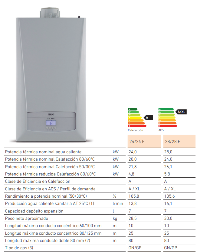 CALDERA BAXI CUBIC 24/24f, por 1.350€ instalación básica e Iva incluido.